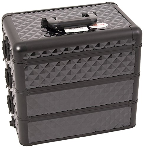 Craft Accents Professional Aluminum Cosmetic Makeup Case, All Black Diamond Pattern, 192 Ounce