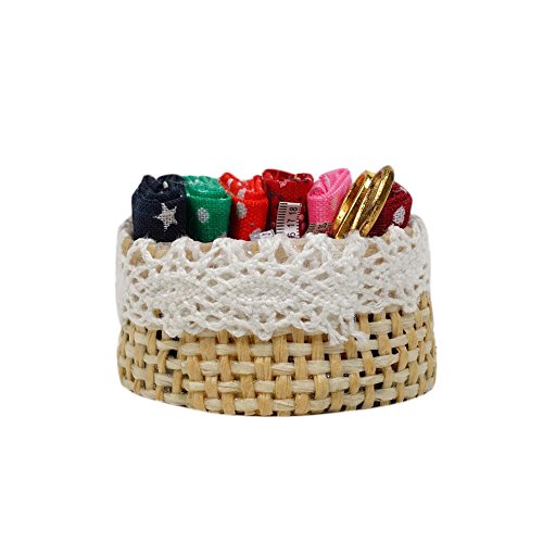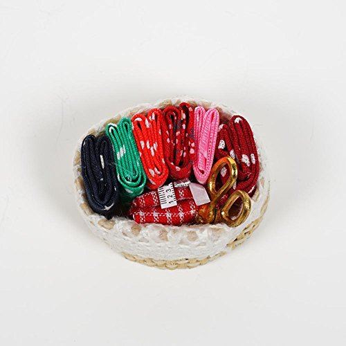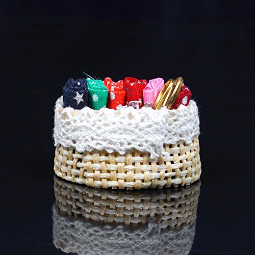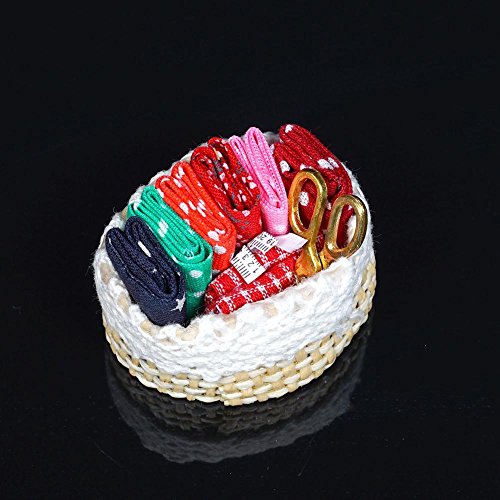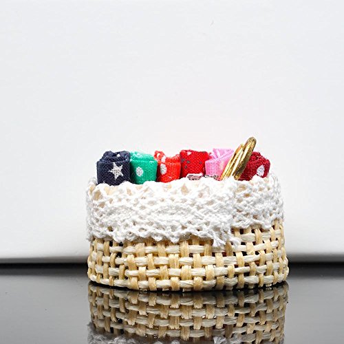 -. Feature : 1:12 scale Dollhouse Miniature Sewing set / size (CM) : long 4.2, wide 3.5, high 2.7 / Sewing manual accessories, very cute and realistic, / One set includes a cane basket, cotton head, and scissors;Note:The contents are fixed and can't be removed / Packages include: 1* sewing accessories