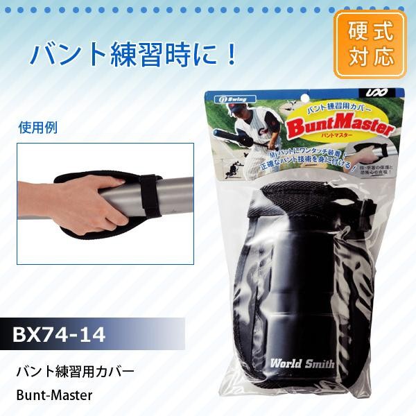 手持ちのバットにワンタッチ装着可能!カバーで保護することによって恐怖心を無くさせ、初心者やバントが苦手なプレイヤーのトレーニングに最適です。 製造国:台湾 素材・材質:表:ポリエチレン裏:ポリエステル 商品サイズ:20×19cm ※サプライヤー直送品 ご注文後3~4営業日後の出荷となります【商品名】バント練習用カバー Bunt-Master BX74-14