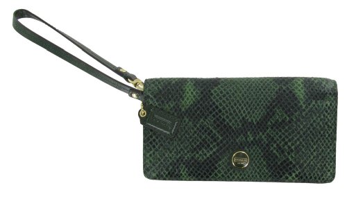 -. Title : Coach Signature Stripe Embossed Exotic Demi Clutch Brass Green