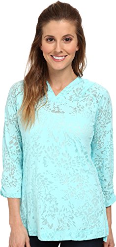 Layer this soft, feather-light burnout hoodie over a bikini top or tight-fitting tank for a casual, flirty look that's comfortable to move in. An open v neck, three-quarter sleeves, and a split hemline combine with sheer burnout detailing to pretty effect.Feature
