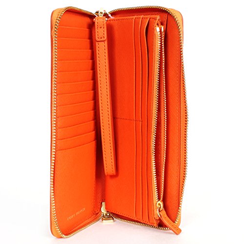 -. Binding : Apparel -. Brand : Tory Burch -. Color : Mandarin Orange -. Department : womens -. EAN : 0888736501981 -. Feature : A slim saffiano leather Tory Burch wallet with gold-tone hardware. / A wraparound zip opens the bifold interior, containing 16 card slots, 4 bill pockets, a file compartment, and a zip pouch. / Optional wristlet strap Leather: Cowhide. / Measurements Height: 4in / 10cm Length: 8.25in / 21cm Depth: 0.75in / 2cm. / Imported -. PackageQuantity : 1 -. ProductGroup : Apparel -. ProductTypeName : ACCESSORY -. Size : One Size -. Title : Tory Burch York Zip Continental Wallet - Mandarin Orange -. UPC : 888736501981 Tory Burch is a luxury lifestyle brand defined by classic American sportswear with an eclectic sensibility. It embodies the personal style and spirit of its CEO and designer, Tory Burch, who creates stylish and wearable clothing and accessories for women of all ages.