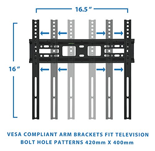 - Feature : 20-55" inch Plasma, LED, and LCD TVs Up To VESA 420x400 / Fits up to VESA 420 x 400 (16.5" Horizontal 15.75 Vertical) / Ultra Low 1" Profile with High grade Steel / Easy lift and lock attachment with adjustable Tabs / Maximum weight capacity: 40 lbs.