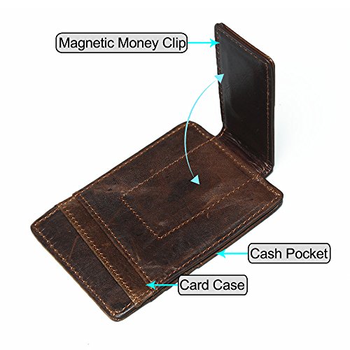-. Binding : Apparel -. Brand : BAIGIO -. ClothingSize : One Size -. Color : Brown -. Department : mens -. Feature : Money Clip Wallet Made from Genuine Leather, With Strong Magnets / Tiny size but have plenty room; Card slots to hold your cards and the magnetic clip for keeping your cash properly / Tough Stitching: Handmade by professional artisans. A beautifully crafted wallet that will only get better with age / Practial Structure: 6 Card Slots, 1 quick acess money pocket, 1 strong magnetic money clip. Compact Design for Front and Back Pocket Wear. / Dimensions: 2.95(L)*4.13(H)*0.4(W) inch; Weight: 0.11 LB -. IsAdultProduct : 0 -. Model : 5128632US -. PackageQuantity : 1 -. ProductGroup : Apparel -. ProductTypeName : ACCESSORY -. Size : One Size -. Title : BAIGIO Magnet Money Clip Genuine Leather Credit Card Case Holder Slim Wallet for Men