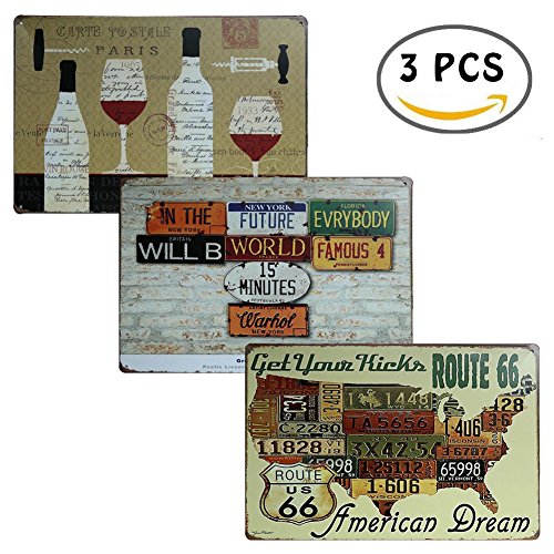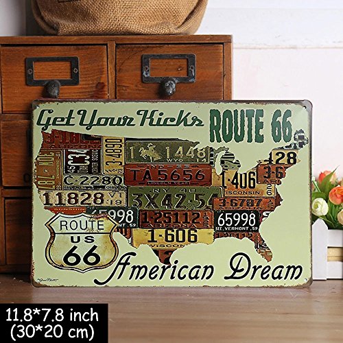 Retro Vintage Tin Signs, 12x8 Inches Home & Coffee & Bar Wall Decor Souvenir Hanging Metal Tin Sign Plate Plaque, (3 pack) (Route 66)