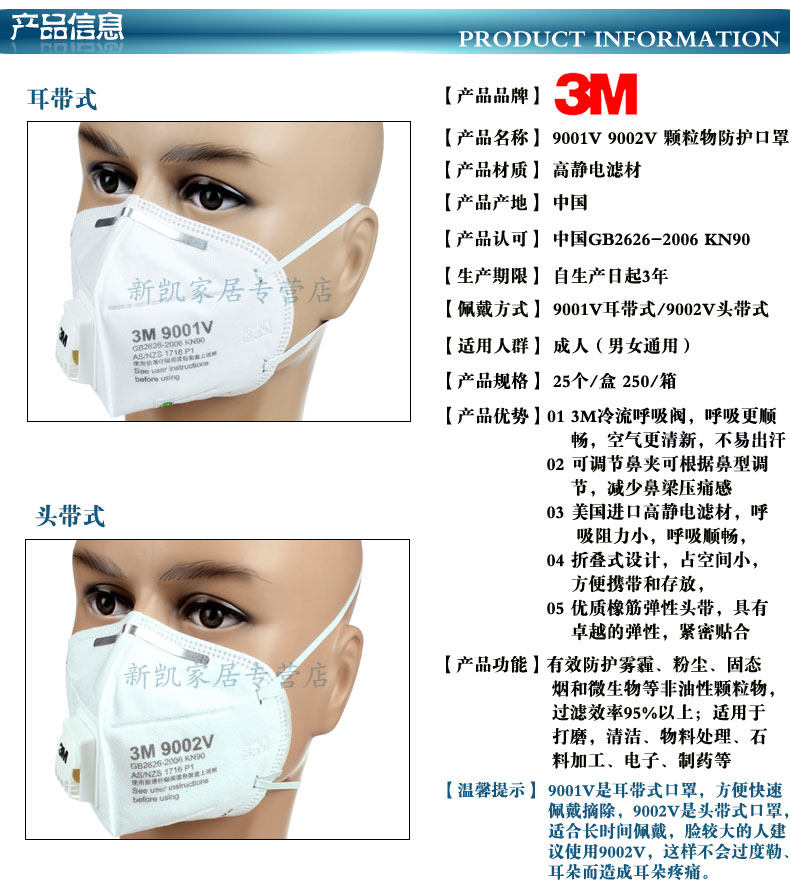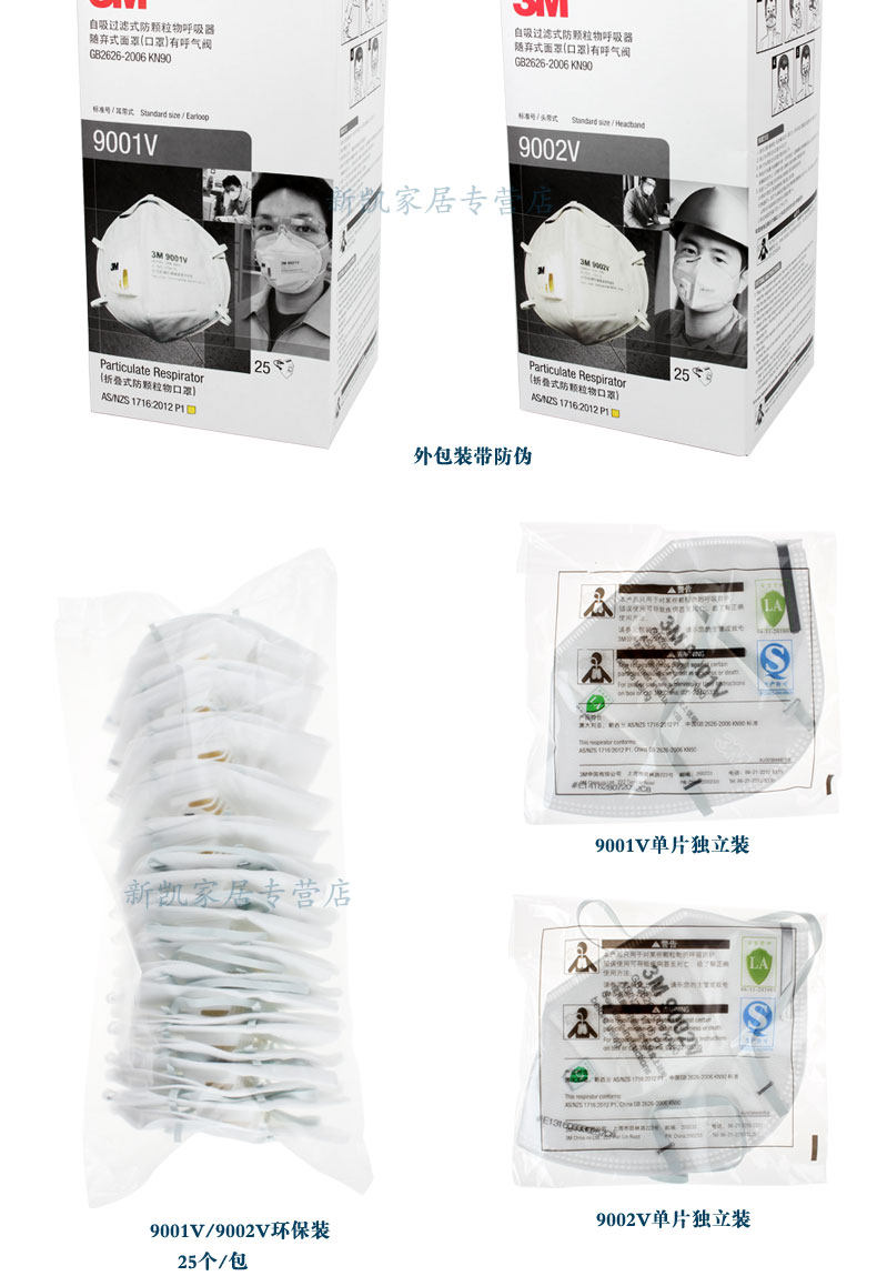 正品3M9001V 9002V工业防护防雾霾呼吸阀男女骑行防PM2.5防尘口罩