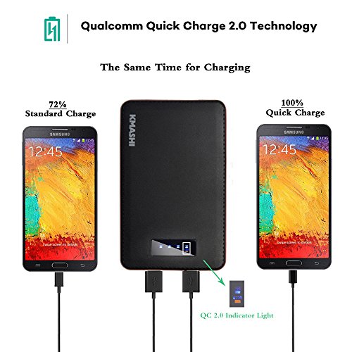-. Binding : Wireless Phone Accessory -. Brand : KMASHI -. Color : Black -. EAN : 6955574647677 -. Feature : Advantage: 20,000mAh Polymer Li-ion LG battery provides enough and stable power to your devices; Quick Charge 2.0 output port charges smartphones which support QC 2.0 tech 75% faster; Dual USB output ports charge two devices simultaneously; Flashlight for emergency situation. / Quick Charge: Quick Charge 2.0 output port compatible with all Qualcomm QC 2.0 devices to reach at the fastest charging speed, supports 5V/2.4A, 9V/2A, 12V/1.5A output. Automatic detection: QC 2.0 indicator light shows orange if your device supports QC 2.0 tech. / Excellent Design: Ultra-slim body - only 0.63in thickness easy to carry and store. Cool black and exquisite style perfect for business trip or outdoor using. / Full Compatibility: For all Quick Charge 2.0 compatible devices, iPhone 6 6s Plus 5S, iPad, iPod, Samsung, HTC, Sony, Nexus, LG, Tablets, digital cameras, bluetooth speaker and more digital devices. / What You Get: 1*Kmashi Quick Charge 2.0 20000mAh External Battery, 1*Micro USB Cable, 1*VIP Card, 1*User manual. 1-Year Warranty and Friendly Customer Service. -. Label : KMASHI -. Manufacturer : KMASHI -. Model : VK6 -. PackageQuantity : 1 -. ProductGroup : Wireless -. ProductTypeName : WIRELESS_ACCESSORY -. Publisher : KMASHI -. Studio : KMASHI -. Title : KMASHI 20000mAh Quick Charge 2.0 Portable Charger External Battery Power Bank Fast Charger