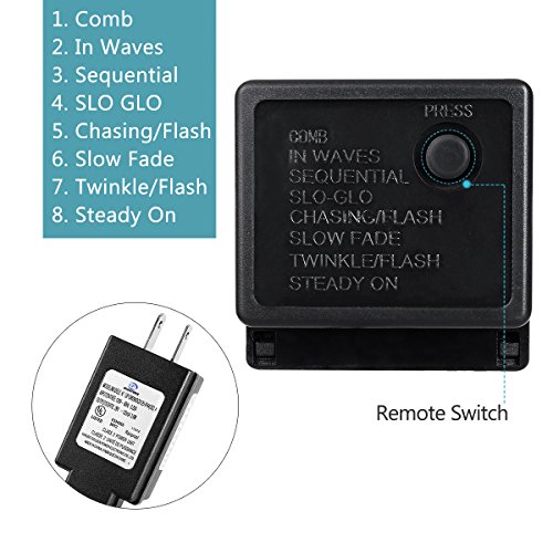 - WARM WHITE, WITH EIGHT LIGHTING MODES. The color is warm white, and the modes are flashing, twinkle, waves, sequential, slow-glow, chasing, slow fade and steady. Choose a favorite, or change the mode to suit your mood.