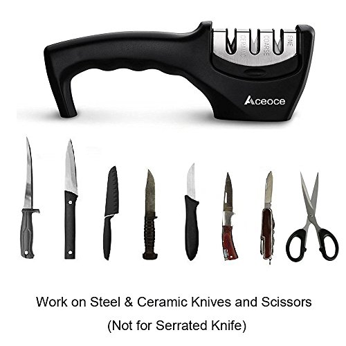 ★WORKS WITH ANY KNIFE: Steel kitchen knives; Ceramic kitchen knives; Pocket knives; Hunting knives.