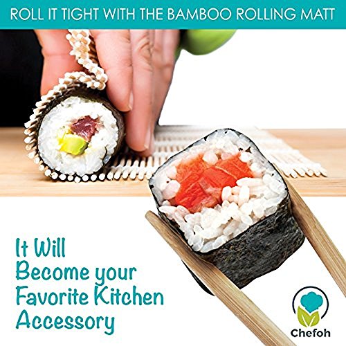 - BAMBOO SUSHI MAT: This easy-to-use sushi rolling mat will help you make differently professionally shaped sushi rolls in no time! Not to mention it’s made of food-safe bamboo, which is lightweight and easy to clean.