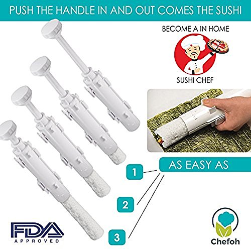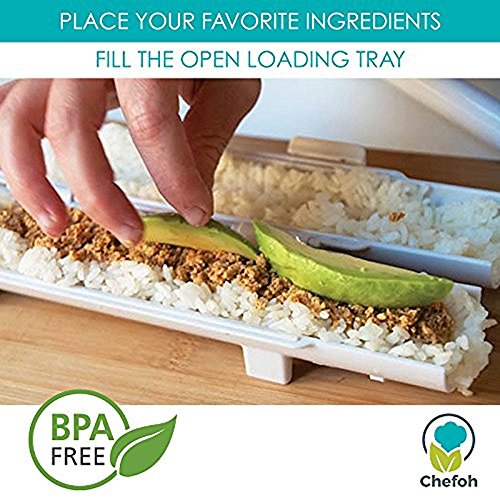 - LOCK & LOAD EASY USE: Making delicious sushi is now as easy as it gets! All you have to do is open the sushi bazooka, “load” it with rice and other ingredients, close it and squeeze out your finished sushi!