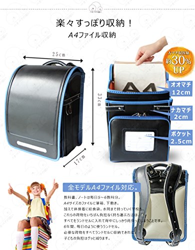 【바오바브의 소원】경량 2017년 란도셀 사내 아이 소녀 고급합 가죽(껍질)대 용량반 자동 방수 마무리 schoolbag 통학 입학 축하 초등학생 통학 가방 5 색전개 6년간 보증(블랙×블루)