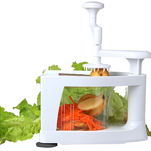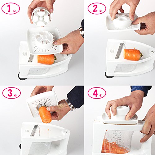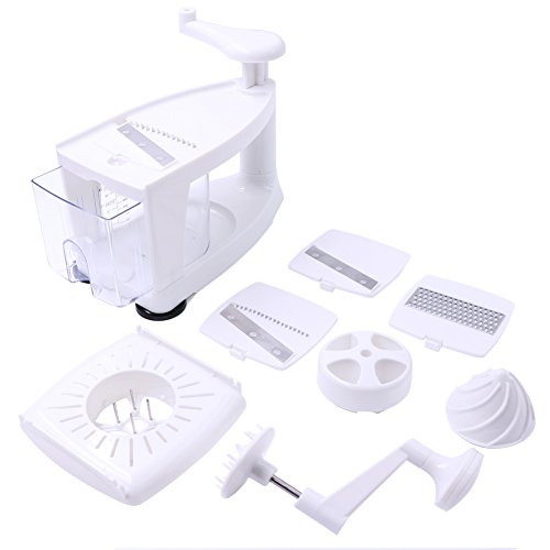 Mutifuntion 8 in 1 Tool: Our spiralizer machine is not only a grater,but also a mandoline, and a juicer. Simply helping you make professional-looking garnishes, apple chips, onion rings, potato nests, elegant salads, vegetable pizza toppings, and so much more