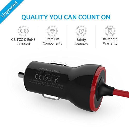What You Get: Anker PowerDrive Lightning (12W car charger with built-in 3ft Lightning Cable), welcome guide, our fan-favorite 18-month warranty and friendly customer service.
