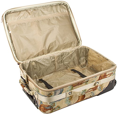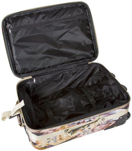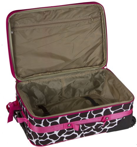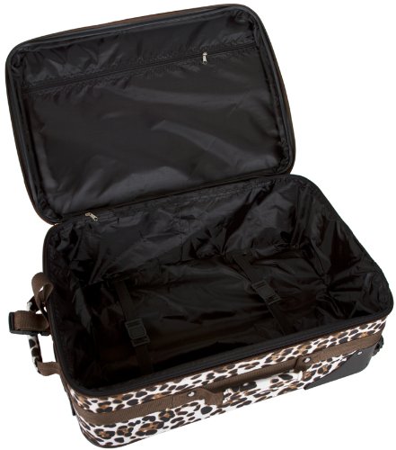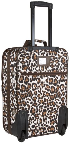 -. Brand : World Traveler -. ClothingSize : 20-inch -. Department : womens -. Feature : 2 Exterior Front Pockets / Rolling wheels and pop up handle for smooth rolling / Expandable / Top and side carry handles / Interior compression straps to keep contents in place -. NumberOfItems : 1 -. ProductGroup : Apparel -. ProductTypeName : LAGE -. Size : 20-inch -. Title : World Traveler Animal Print Collection 20-inch Expandable Carry On Rolling Lage
