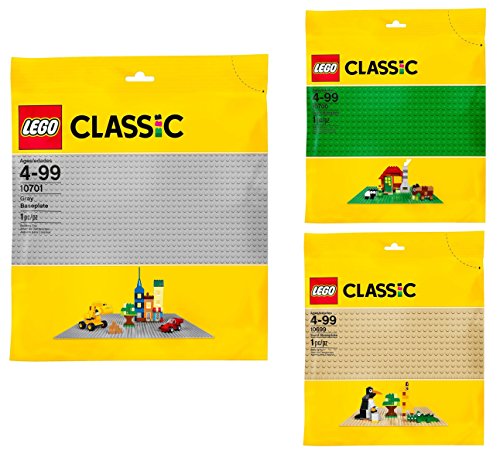 -. Feature : Official L.E.G.O® Classic Baseplates (Gray, Green, Sand) / Provides a solid foundation for all L.E.G.O® building bricks / Includes one L.E.G.O® 10701 Classic 15x15 inches (38cm) large square GRAY colored plate / Includes one L.E.G.O® 10700 Classic 10x10 inches (25cm) small square GREEN colored plate / Includes one L.E.G.O® 10699 Classic 10x10 inches (25cm) small square SAND colored plate