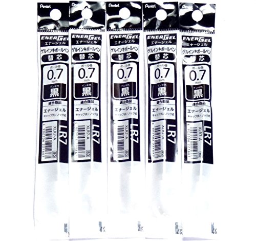 Pentel 0.7mm Black Ink Refill (XLR7-A), for EnerGel Liquid Gel Ballpoint Pen (BL57), × 5 Pack/total 5 pcs (Japan Import) [Komainu-Dou Original Package]