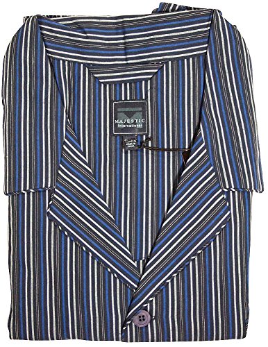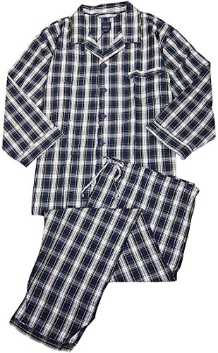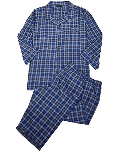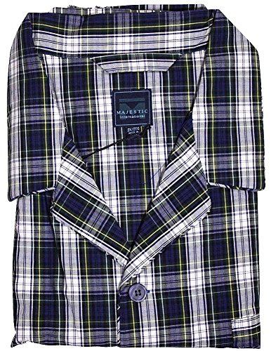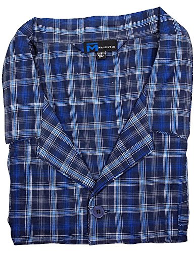 Product Description Majestic International - Mens Big Broadcloth Plaid Long Sleeve Pajamas, Java Brown, Blue, Coat Style Top, Breast Pocket, Piping Trim, 1/2 Elastic Waistband Pant with Drawstring Tie, 100% Cotton, Made in China, #35564 35-564 0