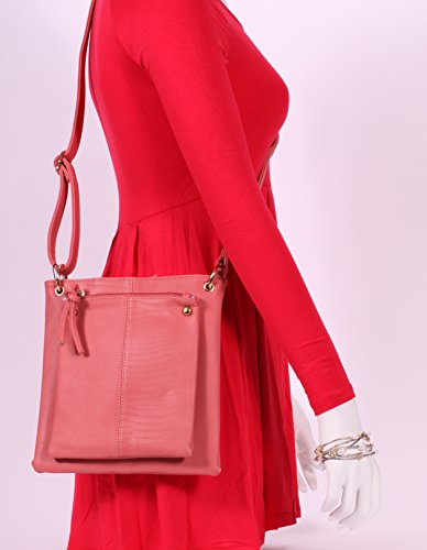 -. Brand : MODA -. Color : pink -. Department : womens -. Feature : Lightweight travel crossbody; Comfortable; it's perfect for those long trips. Wears comfortably across your body or on the shoulder. / Perfect for an everyday bag; Made of faux leather. / Accented with gold toned hardware and fashionable tassels. / Two separate compartments perfect for holding and organizing all your items:1 large (features 2 slip and 1 zippered pocket) and 1 small zipper front section. / Measures: 9" x 9.5" x 1.5"; Strap adjust easily to fit desired style; Strap drop 22" max. -. Model : A0406 -. ProductGroup : Shoes -. ProductTypeName : HANDBAG -. Title : MoDA Faux Leather Crossbody Messenger Handbag Shoulder Bag Carry All Purse