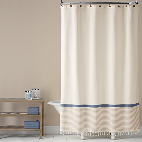 Saturday Knight Fringe Border Shower Curtain, Blue