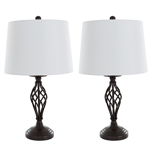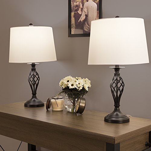COHESIVE TRANSITIONAL STYLE - Each lamp is topped with a cream fabric tapered drum shade and has an open spiral cage design in oil rubbed bronze metal finish. Its elegant silhouette can complement most décor styles. Ideal for reading, illuminating a dimly lit corner, or adding ambiance to any room. They will look right at home to complete your console in the entryway, your living room or office area.