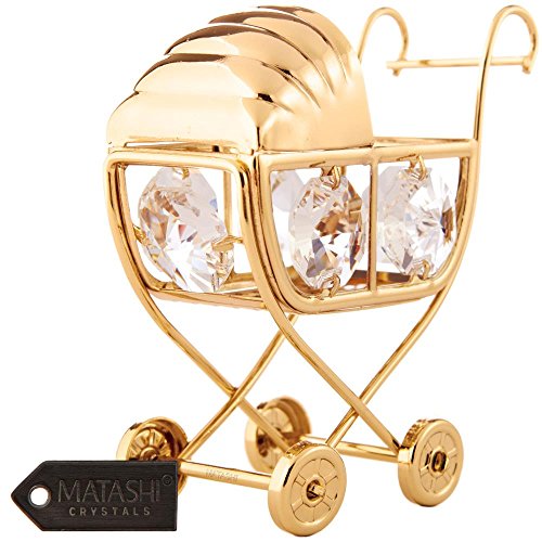 24K Gold Plated Crystal Studded Baby Bassinet Ornament Stroller by Matashi
