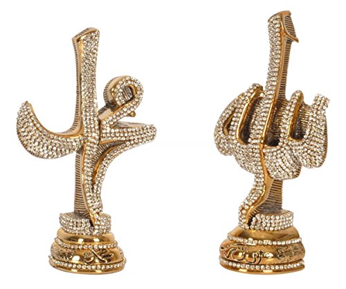 Set of 2 piece Allah and Muhammad name with rhinestones Islamic Art Sculpture Table Decor (Gold tone)