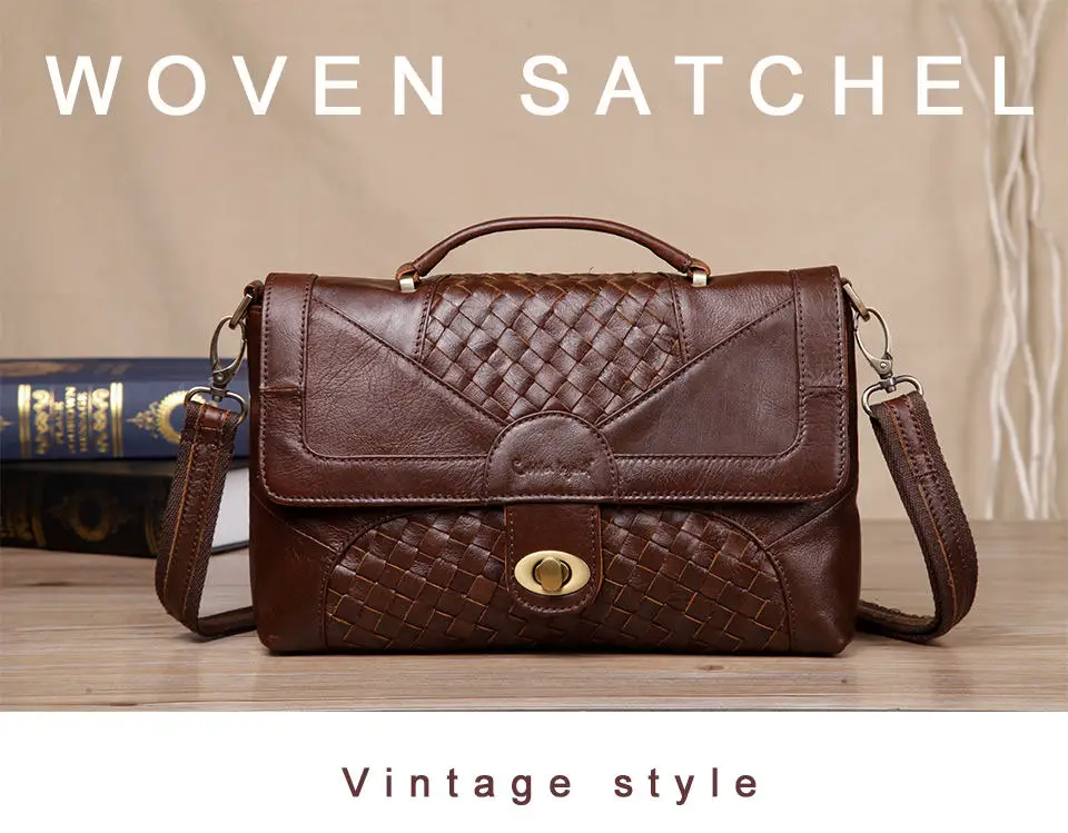 コブラー伝説古い学校女性バッグ編みサッチェルヴィンテージバッグ本革トートクラシックブリーフケースデザイナーハンドバッグブランド