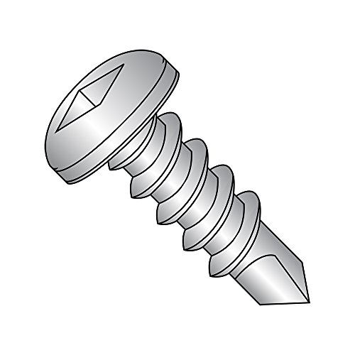 18-8 Stainless Steel Self-Drilling Screw, Plain Finish, Pan Head, Square Drive, #2 Drill Point, #10-16 Thread Size, 1/2" Length (Pack of 25)