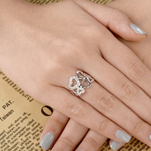 -. Title : EVER FAITH® Sterling Silver 925 Woman's Gift Pave CZ Sweet Love Heart Cocktail Ring Clear