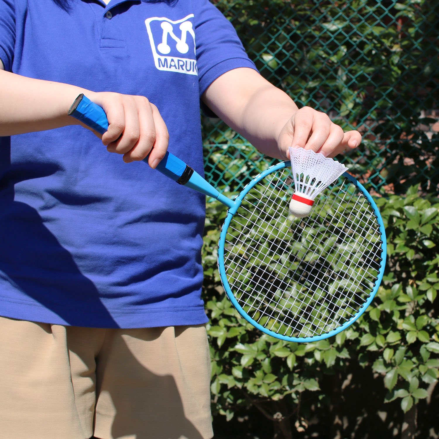 子供でも楽しめる、小さめラケットのバドミントンセット。ラケット2本・シャトル2個入り。