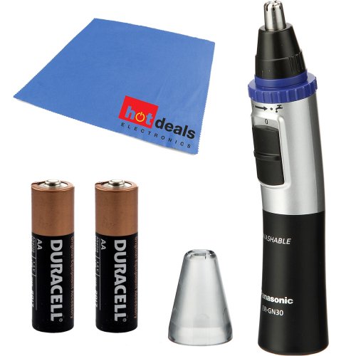 The Panasonic ER-GN30-K nose hair trimmer for men makes it quick, clean and easy to trim nose and ear hair, detail eyebrows and detail mustaches and beards. It also removes facial and body hairs, making it a great nose hair trimmer for women. This top rated nose hair trimmer uses a safe, rotary nasal hair cutting system to eliminate the risk of injury caused by using scissors as a nose and ear clipper. Its ultra-sharp, hypoallergenic dual-edge blades are uniquely curved to draw in nose and ear hair from top and sides for efficient trimming, and leave the proper amount of hairs for natural filtering. And its waterproof, wet/dry personal groomer convenience lets you comfortably use this Panasonic trimmer in the shower or dry anytime. The built-in Vortex cleaning system makes cleaning the ear and nose trimmer fast and thorough. Simply immerse in water and activate the cleaning mode. Water is instantly pulled in and spun throughout the trimmer for total nose hair clipper cleansing. A must-have addition to any woman's or men's grooming kit, the lightweight Panasonic ER-GN30-K men's nose and ear hair trimmer is powered by one AA-size battery (not included), enough for 90 minutes of trimming, and includes a protective electronic nose hair trimmer cap and a cleaning brush for quick, on-the-spot maintenance.Feature