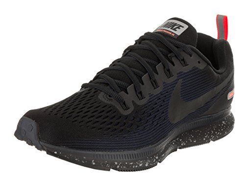 -. Binding : Apparel -. Brand : NIKE -. Department : mens -. Feature : Zoom Air units provide responsive cushioning / Fit-sole sockliner conforms to the shape of your foot to provide comfort and support / Waffle pistons in the rubber outsole help absorb impact and provide multi-surface traction / 360 reflective elements help you remain visible in low-light conditions / Rubber crash rail on the lateral outsole acts as a cushioning device at contact for a soft, smooth transition -. Label : Nike -. Manufacturer : Nike -. Model : NK26762M:Black:M-$P -. MPN : 907327 001 -. PackageQuantity : 1 -. PartNumber : 907327 001 -. ProductGroup : Shoes -. ProductTypeName : SHOES -. Publisher : Nike -. Studio : Nike -. Title : NIKE Men's Air Zoom Pegasus 34 Shield Running Shoe