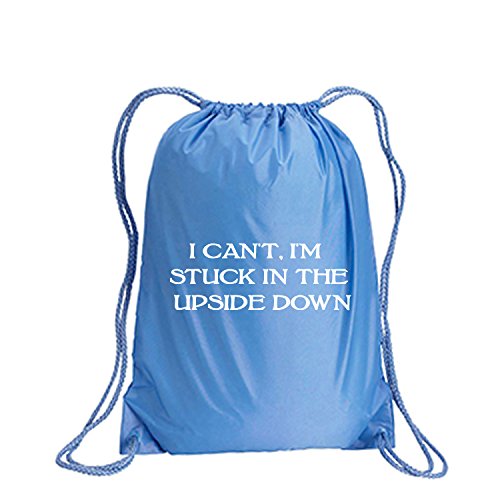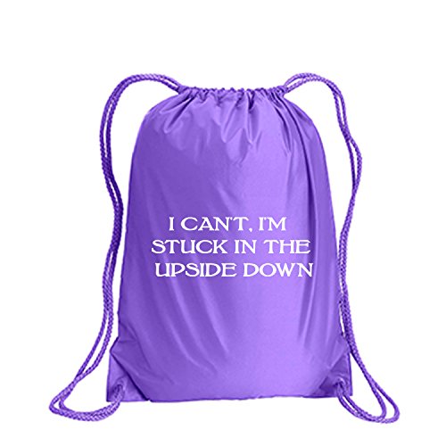Product Description This durable and stylish nylon tote features "I Can't, I'm Stuck In The Upside Down" on a cinch pack tote with white ink. Bag comes in small and large sizes and is made of a durable 210 Denier nylon and has color-matched draw cords. Printed in the USA on an imported bag. 0