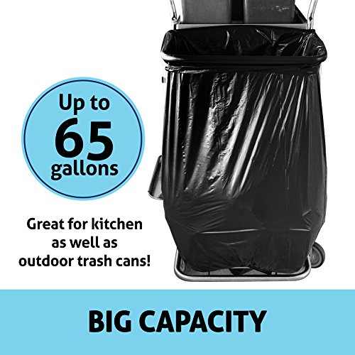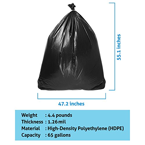 - BIG CAPACITY - These garbage bags have the capacity of 65 gallons with the size of 47.2 x 55.1 inches and thickness 1.5 mil. It is ideal for large trash containers, kitchen, and outdoor trash cans!