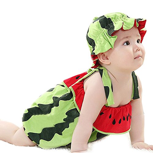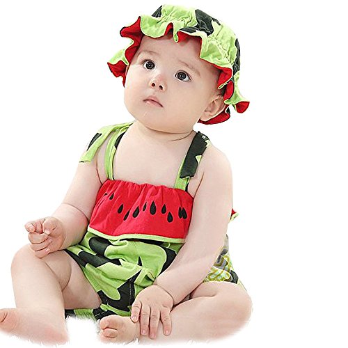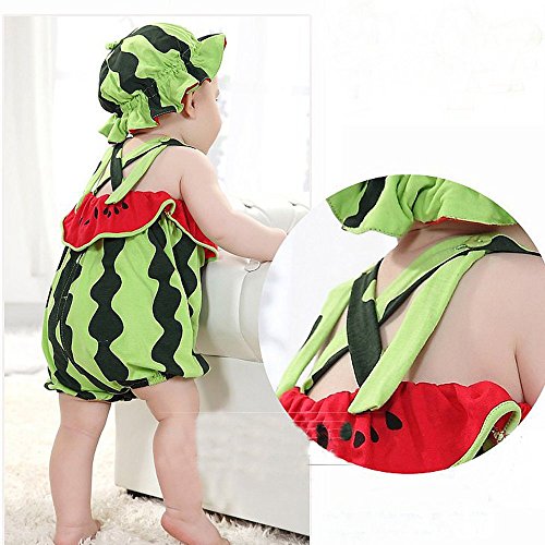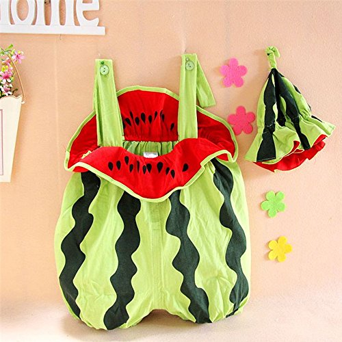 -. Title : JISEN® Baby Suspender Romper with Cap Summer Watermelon Photography Costume