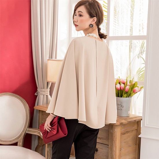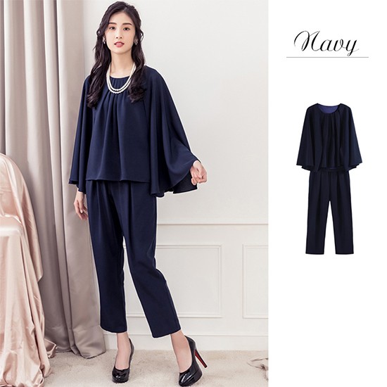 エレガントなバットスリーブがとても上品なパンツドレス。