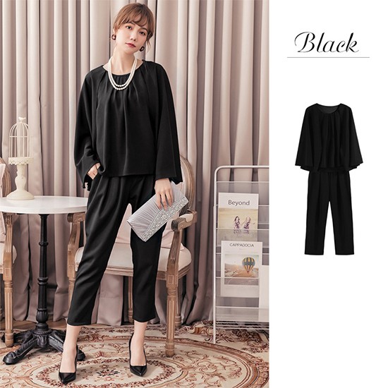 結婚式の二次会や謝恩会、ビジネスシーンでもOKなパンツドレスです!