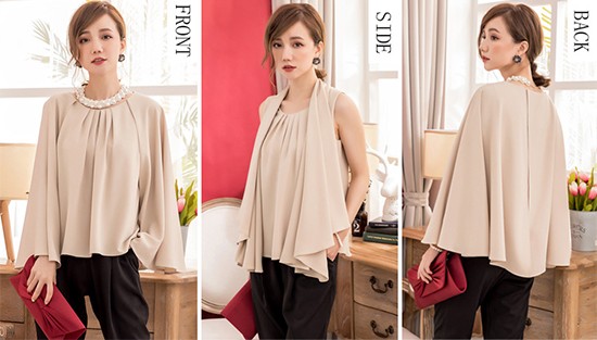 バットスリーブを肩にかけたり、リボンのように結んだり着こなしも楽しめます♪