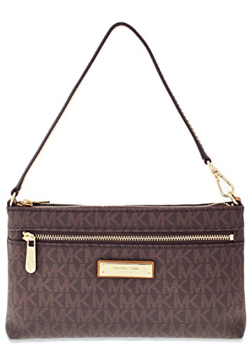 Product Description A luxe essential for a day on the go, this wristlet is designed to hold a smartphone, keys and cards. Michael Kors logo print and plaque combine with leather trim for a timeless accessory. 0