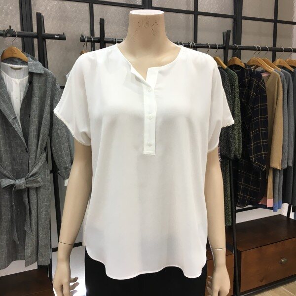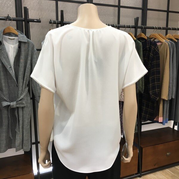 소매의 레이스띠 디테일이 매력적인 카라블라우스입니다. 시원한 폴리 소재로 한여름까지 쭉 즐기기 좋아요. 브이넥 카라 디자인으로 캐주얼한 매력을 더하고 답답함없이 더욱 시원한 분위기를 준답니다.팬츠에 믹스매치해도 좋고 스커트와 매치해 여성스러움을 더욱 강조해도 좋은 제품이예요~ 소매 디테일 하나만으로도 포인트 역할 톡톡히 하는 BL ! 총장길이는 55사이즈 기준으로 63.5cm입니다.