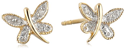 -. Title : 10k Yellow Gold Dragonfly Diamond Earrings (0.005 cttw, I-J Color, I2-I3 Clarity)