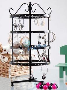 4 Tiers Black Rotating Spin Table Top 92 pairs Earring Holder Organizer Stand / Jewelry Stand Display Rack Towers by LilGift (BLACK)