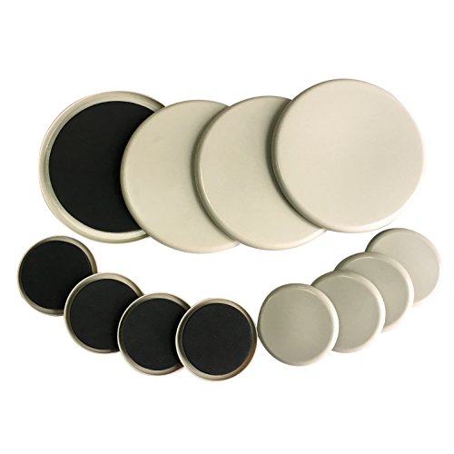 -. Feature : CONTAINS:4 pcs 7 Inch Width Moving slider.8 pcs 3.5 inch moving slider. / TO USE:Slightly lift or tilt the object to be moved and place a furniture slider underneath each leg bottom or corner.Black non-stick EVA gripper pad must face upwards, then simply push or pull the object that needs to be moved.When you finish moving the furniture,these sliders may stay in place or be removed and keep in the zippered bag for using over and over. / USE ON:These HDPE plastic sliders work on carpets and rugs,and can move heavy or bulky objects,such as desk, file cabinet, TV stand, dining room table, bookcases,tables, sofas, beds, dressers, recliners, ANY heavy appliances etc.. / These sliders feature durable EVA foam that securely grips furniture for a long-lasting hold. / WARNING:To prevent carpet,carpets should be kept free of dirt and grit.This products is NOT designed to be used under furniture or appliance that have wheels(caster)attached.When moving or lifting large furniture,know your limitation.Additional assistance may be required.