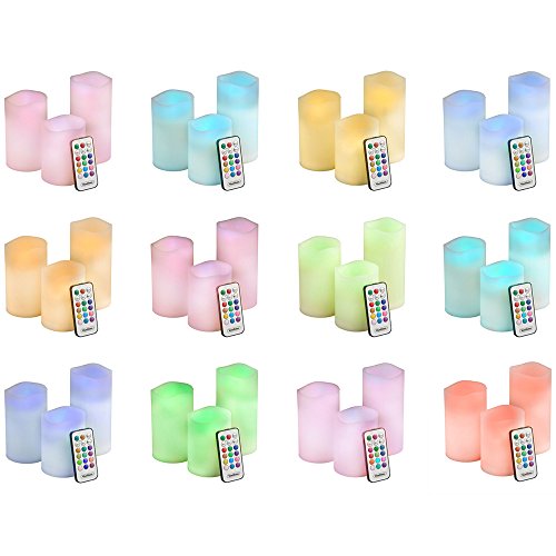 Set of 3 battery operated wax home interior LED color changing candle lights with remote control