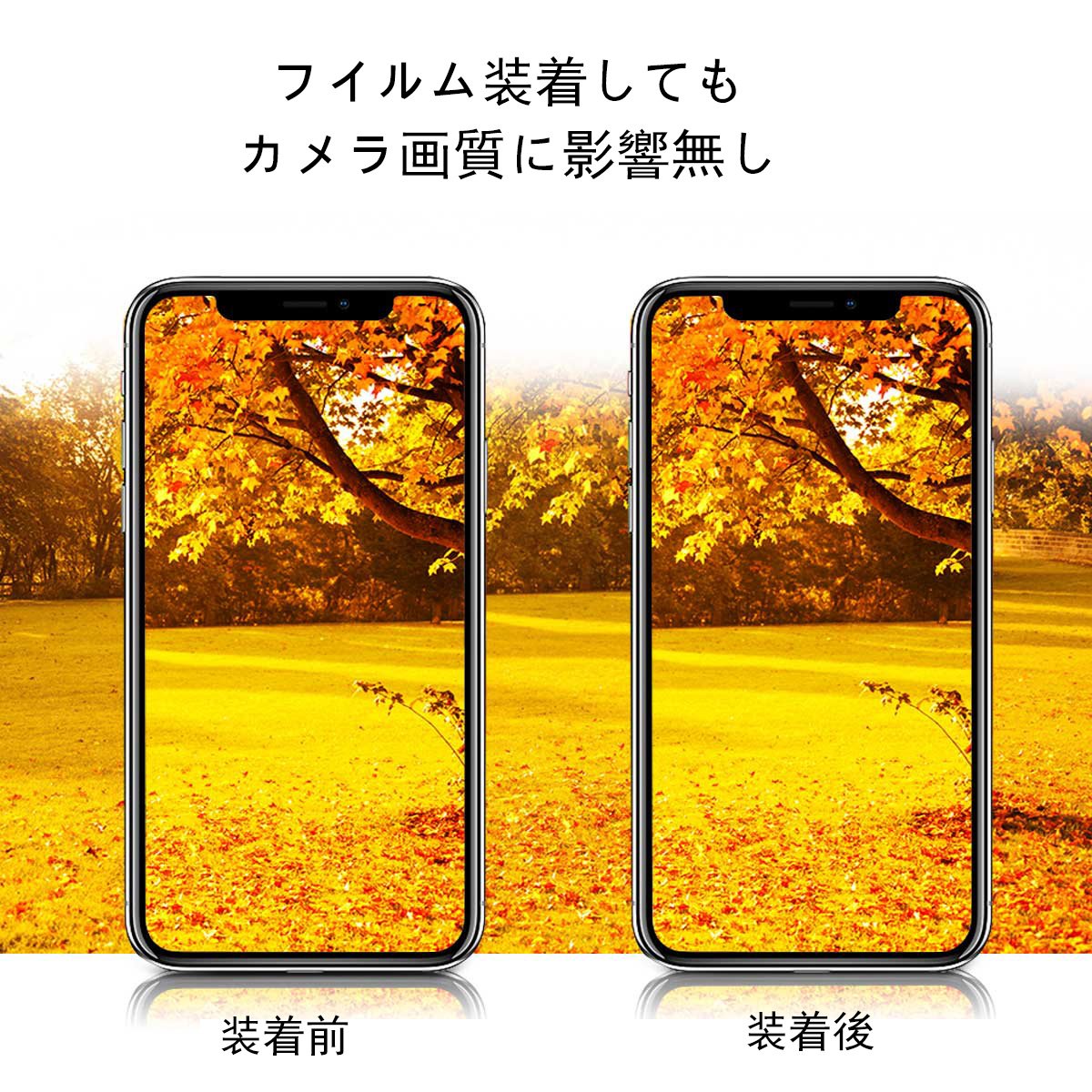 Because the transmittance of light is 99% or more, vivid color development of original iPhone X is not damaged at all.