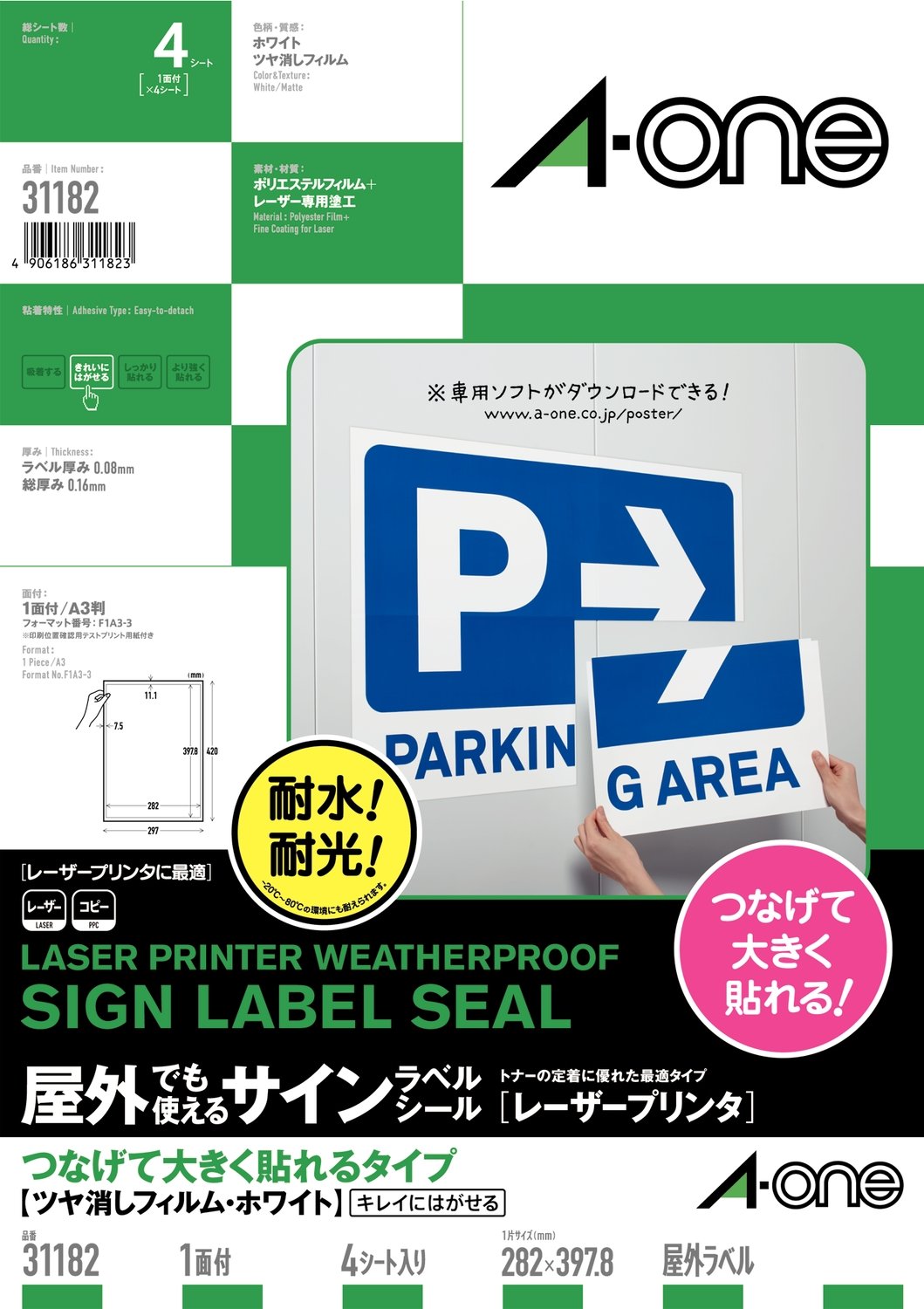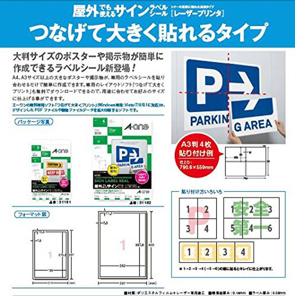 A-One outdoor sign label connected large pasted type matte white removability A3 31182