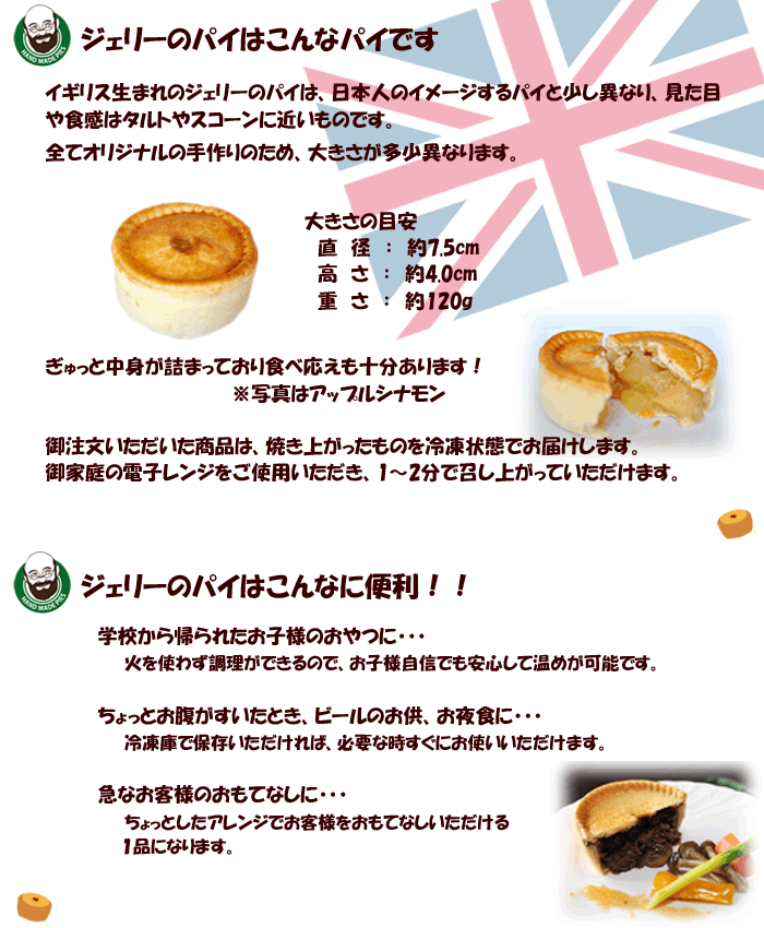 | 原材料 | りんご、小麦粉、ショートニング、マーガリン、砂糖、シナモン、卵、牛乳、酸味料、酸化防止剤(ビタミンC)、乳酸カルシウム、(原材料の一部に小麦、乳、卵、りんご、大豆を含む) |