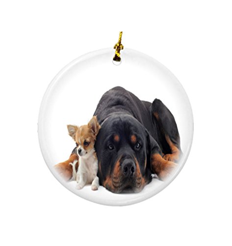 Rikki Knight Rottweiler and Chihuahua Design Round Porcelain Two-Sided Christmas Ornaments