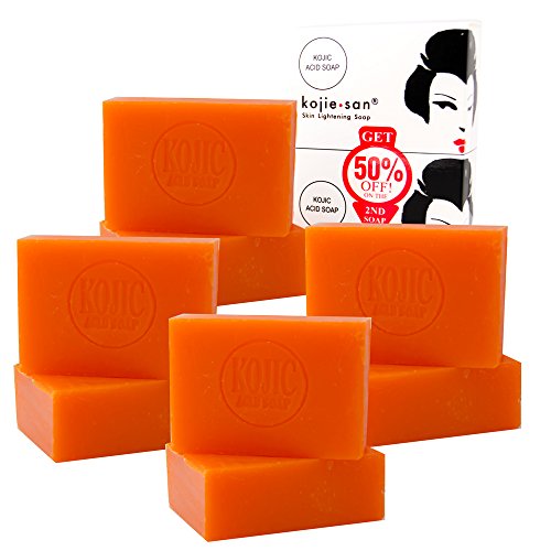 -. Feature : Safely whiten & soften skin with deep cleansing. This is the original kojic acid lightening soap, Kojie San's formulation blends effective whitening ingredients with nourishing coconut oil and a fresh orange fragrance. Kojic acid was discovered while processing rice for Japanese wines. The naturally derived ingredients in this soap have been proven to safely and quickly reveal even skin by gently smoothing away dark spots, discoloration, and other imperfections. / 8 bars of 135gm soap. (4 packs - each pack contains 2 bars). / Suitable for use on both face and body. Moisturizing coconut oil P.R.Imes skin for maximum absorption of kojic acid. / Fades age spots, freckles, and other signs of sun damage. Gently heals acne blemishes and erases red marks and scars. / Continuous use will result in fairer skin and prevent breakouts. See results within days!